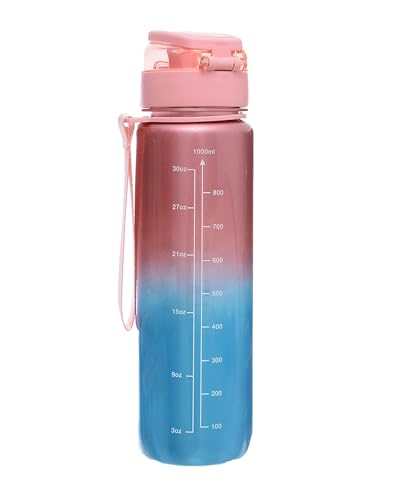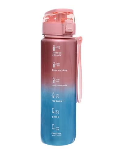 H-Home - زجاجة مياه رياضية مع أداة شفط بلاستيكية وجدول زمني، سعة 1 لتر، متعددة الألوان