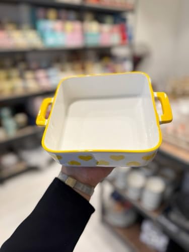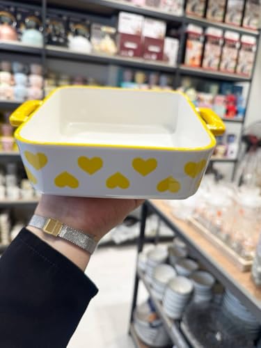 Generic - جيني طبق خبز سيراميك مربع مع قلوب صفراء، 16 × 16 سم، ابيض واصفر .ال اي