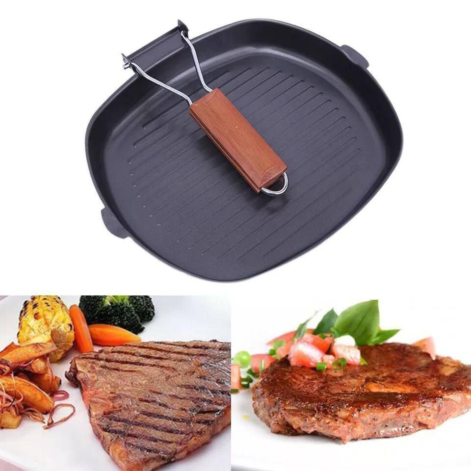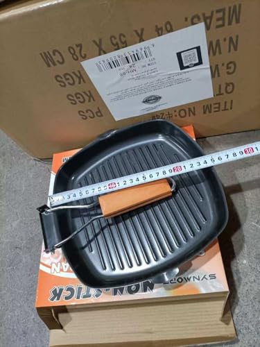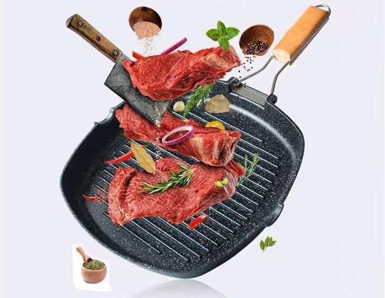 Generic - جيني طاسة شواء مربعة بمقبض خشبي قابل للطي، سطح صلب غير لاصق، تصميم محمول 20 سم