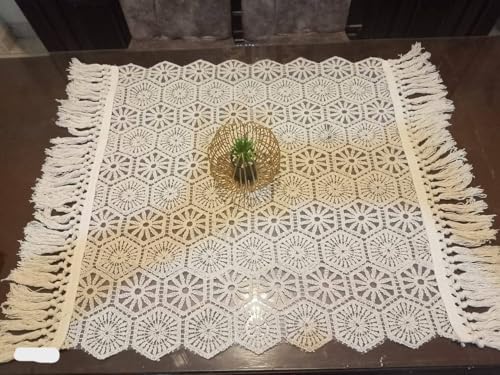 Generic - جيني مفرش مكرمية مربع، مفرش طاولة منسوج يدويا مع شراشيب بشراشيب، ديكور منزلي بنمط بوهو. فلو