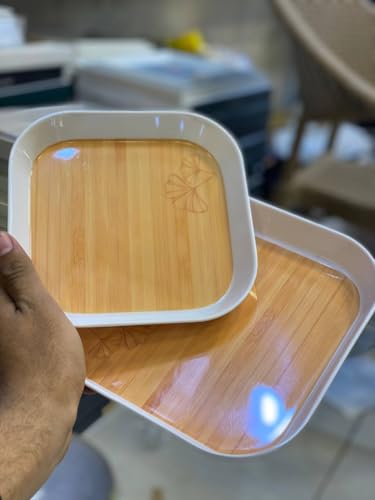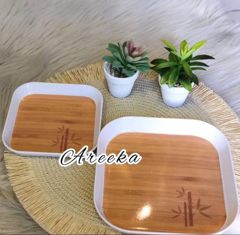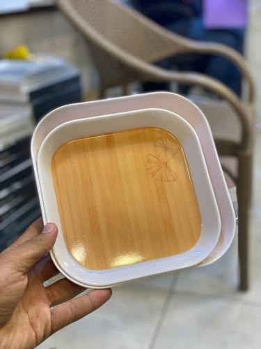 • التصميم: تتميز مجموعة الأطباق المربعة الحديثة بتصميم أنيق بلونين مع حافة خارجية بيضاء ولمسة نهائية داخلية من الخيزران الطبيعي