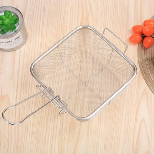 Generic - جيني مصفاة مربعة من الستانلس ستيل بمقبض قابل للطي، 20 سم، سلة قلي وتحميص مقاومة للصدا، .db