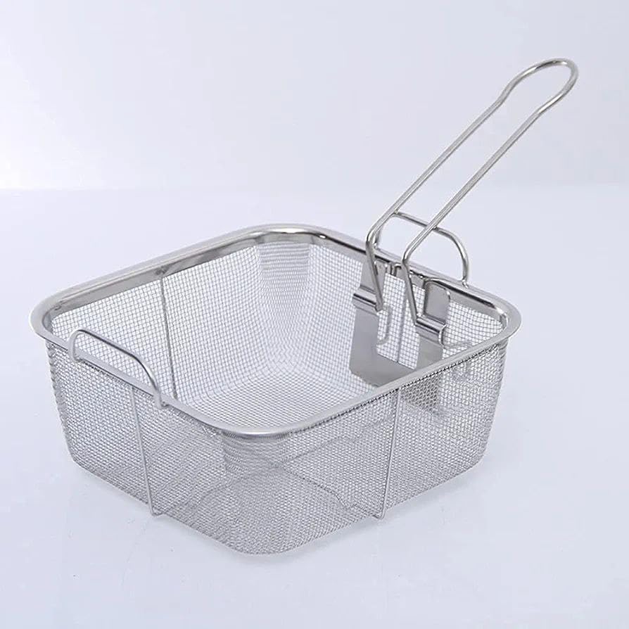 Generic - مصفاة شبكية مربعة من الفولاذ المقاوم للصدأ بمقبض قابل للطي، سلة متعددة الأغراض للمطبخ، 24 سم