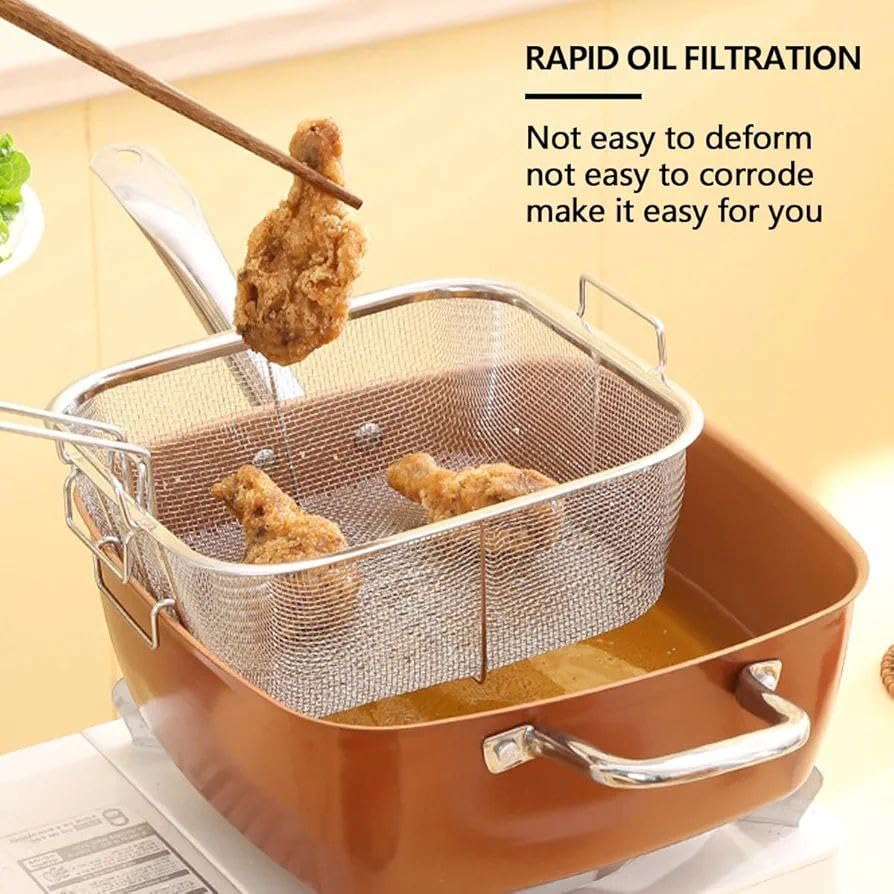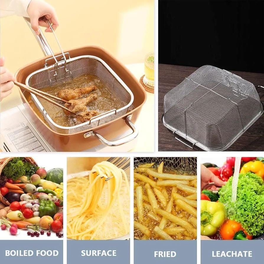 - تصميم متعدد الاستخدامات: مصفاة متعددة الأغراض مثالية للقلي والتحميص والتجفيف وتصفية الأطعمة المختلفة في مطبخك.