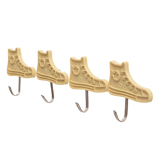 Generic - طقم خطافات ستانلس تُعلق على الحائط بتصميم حذاء بلاستيك ذاتية اللصق، 4 قطع - لون اصفر وفضي، الحد الأقصى للوزن الموصى به: 5.0 كيلوجرام