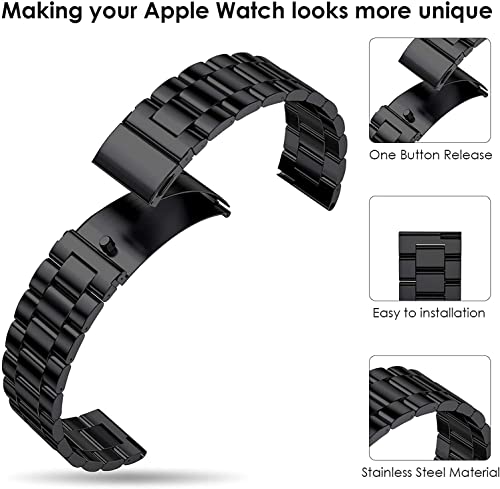 Generic - سوار من الفولاذ المقاوم للصدأ مناسب للجنسين لساعة ابل سيريز 7 (لون أسود، مقاس 45 ملم)