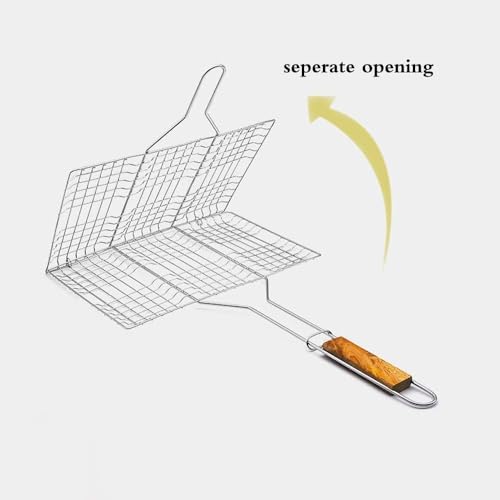 Generic - سلة شواية فولاذ مقاوم للصدأ، شبكة شواية محمولة بمقبض خشبي، صينية تحميص