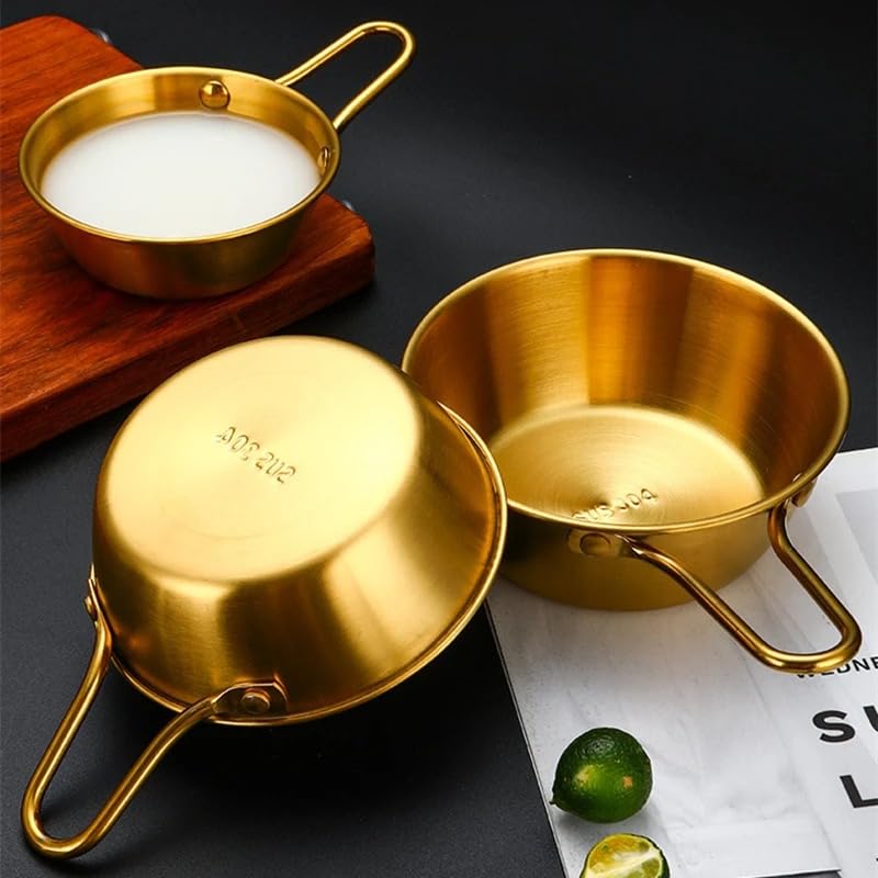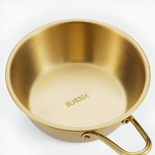 Generic - طاسة مسطحة مطلية بالدهب الاستانليس - مثالية للتقديم والطهي على النار 🌟 - من جينيريك