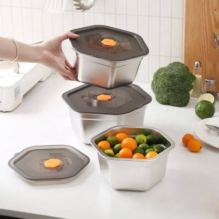 - هيكل فاخر: مصنوع من الستانلس ستيل عالي الجودة مع أغطية سيليكون تخلق إغلاقًا محكمًا لتخزين الطعام وحفظه بشكل مثالي
