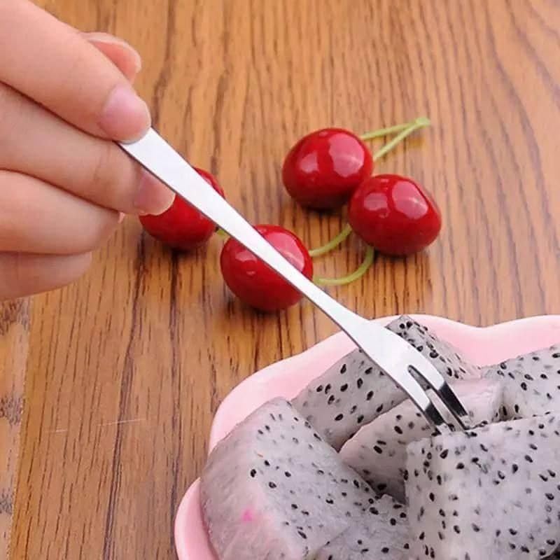 Generic - جيني طقم شوك فاكهة من الستانلس ستيل، تصميم 2 في 1، ادوات طعام عملية
