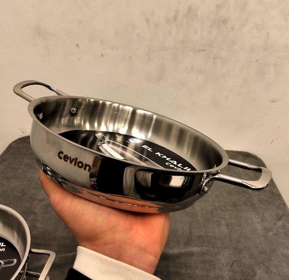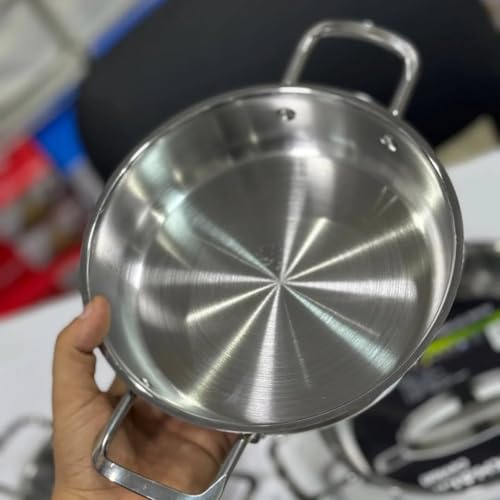 Generic - طاسة قلي من الفولاذ المقاوم للصدأ بمقبضين، مصنوعة من فولاذ بدرجة 18/10 المقاوم للصدأ، مع توزيع متساوي للحرارة (مقاس 22 سم)