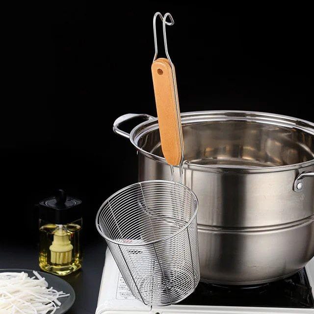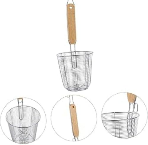Generic - مصفاة مكرونة من الفولاذ المقاوم للصدأ بمقبض خشبي، مصفاة مطبخ مثبتة في وعاء، سلة تصريف الزيت
