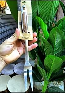 Generic - جيني ملعقة تقديم من الستانلس ستيل بمقبض خشبي، مقاومة للصدا، ادوات مطبخ متينة للطبخ والتقديم. (شوكة)