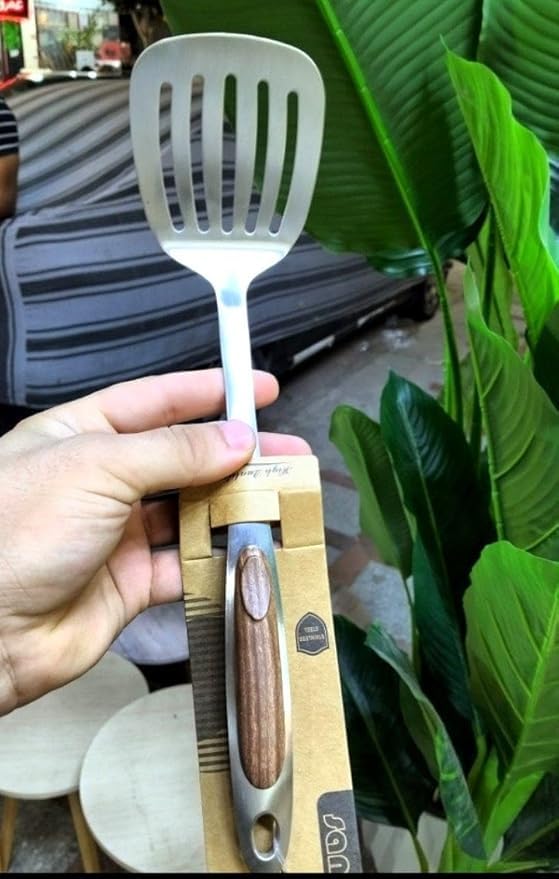 • قبضة مريحة: تتميز بمقبض خشبي مصمم هندسيًا يوفر قبضة آمنة ومريحة أثناء مهام الطهي والتقديم