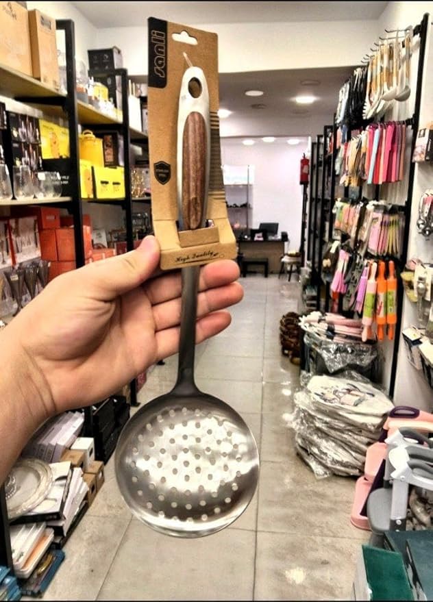 • مادة فاخرة: مصنوعة من الستانلس ستيل عالي الجودة مع مقبض خشبي أملس يجمع بين المتانة والجمالية الطبيعية الأنيقة لمطبخك