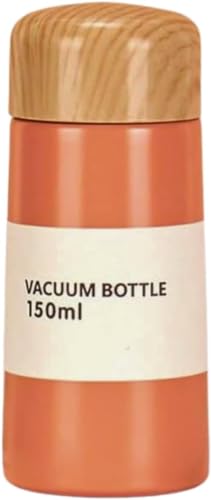 Generic - كوب ماء محمول من الفولاذ المقاوم للصدأ، تصميم خشبي حبيبي، محكم الغلق ومقاوم للانسكاب، 150 مل، لون وردي