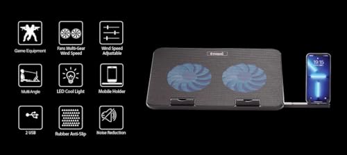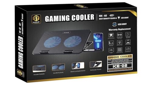 Generic - جيني مبرد العاب قياسي Ice-02 USB - مروحتين، مصباح LED ازرق، حامل موبايل - اسود
