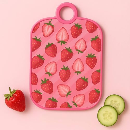 Generic - لوح تقطيع بنمط الفراولة، مزخرف للمطبخ، سمك 1.5 سم، حماية من الميكروبات، وردي وأخضر