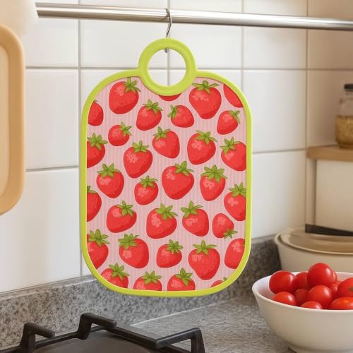- مزايا التصميم: لوح تقطيع ساحر بنقش الفراولة مع إمكانية التعليق الزخرفي، مثالي للعرض في المطبخ والاستخدام العملي.