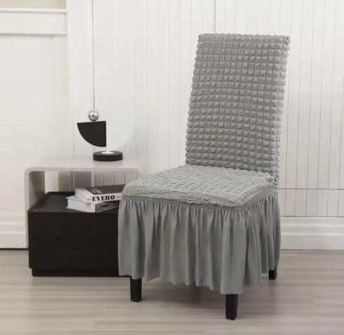 - تصميم فاخر: أغطية كراسي طعام أنيقة تتميز بنمط كروشيه فاخر وتنورة مكشكشة أنيقة تضيف الرقي إلى أي ديكور لغرفة الطعام