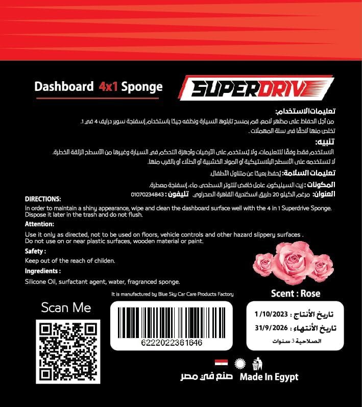 generic - إسفنج سوبر درايف متعددة الاستخدامات 4 في 1 لتلميع تابلوه السيارة والجلد - برائحة الورد