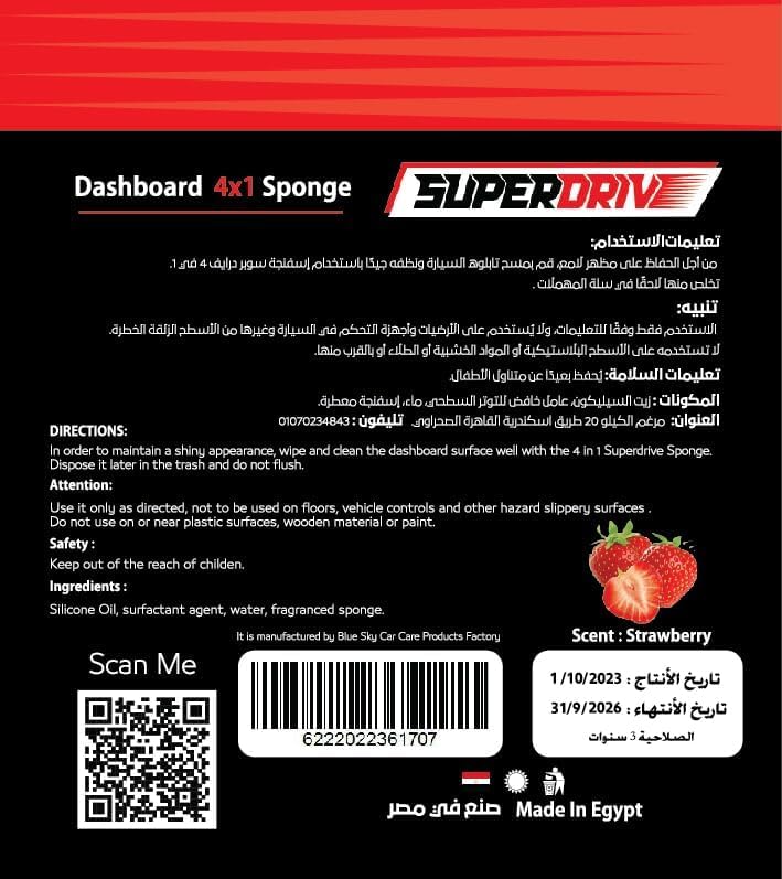 generic - إسفنجة تلميع 4 في 1 للتابلوه والجلد سوبر درايف، برائحة فراولة