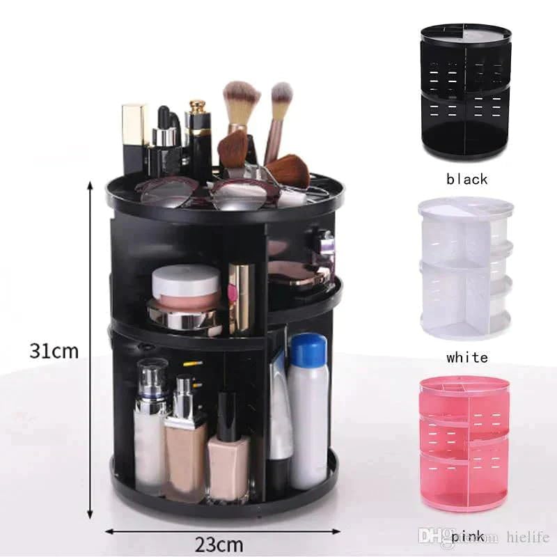 - منظم مكياج دوّار بتصميم 360° لتسهيل الوصول إلى جميع مستلزمات المكياج.