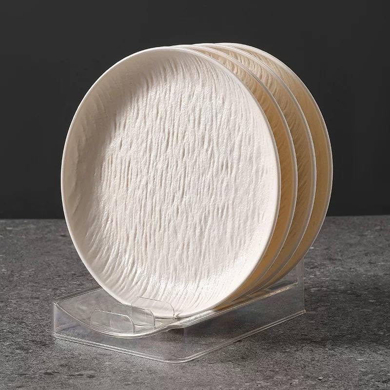 Generic - أطباق عشاء مزخرفة مع حامل عرض، مجموعة من 7 قطع، أبيض، 6 أطباق وحامل أكريليك، اس ايه