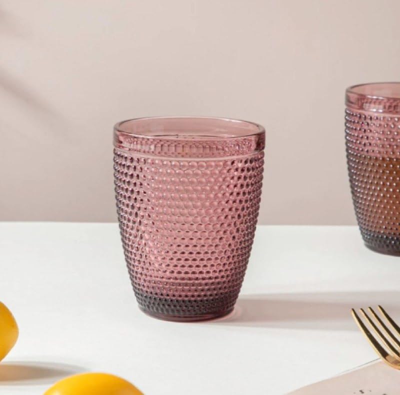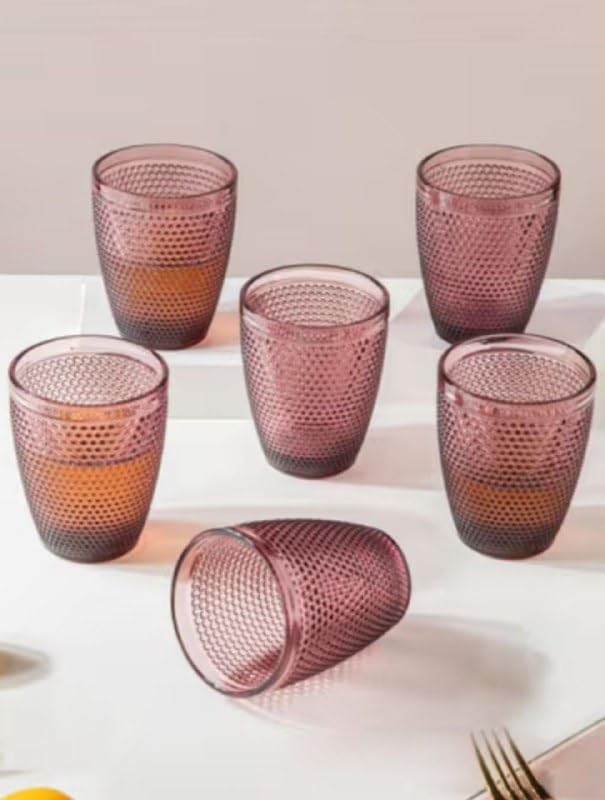- تصميم أنيق: أواني شرب زجاجية مزخرفة تتميز بنمط هونيل مميز بلون بورغندي غني يضيف الرقي إلى أي طاولة
