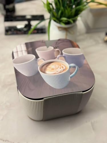 - محتويات الطقم: يتضمن الطقم الكامل 4 أكواب متناسقة بألوان الباستيل التكميلية، مثالية للاستخدام اليومي أو المناسبات الخاصة.