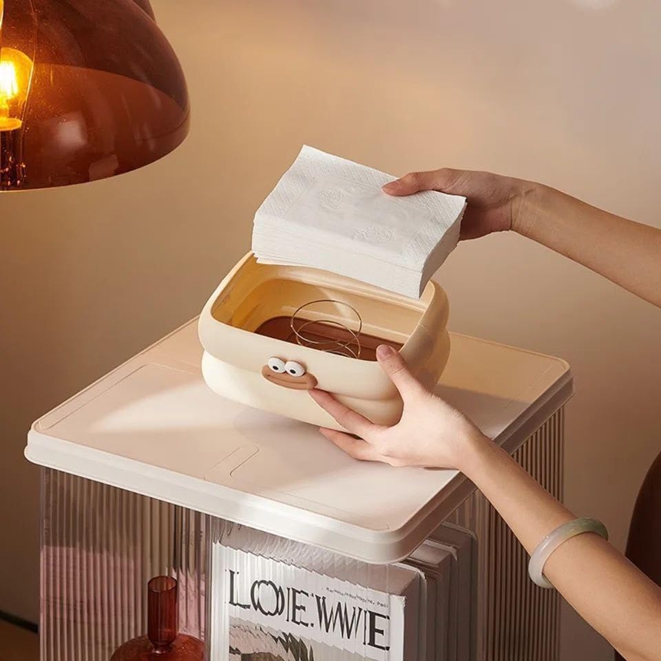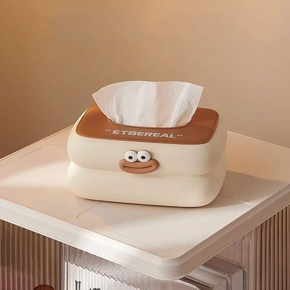 - مزايا التصميم: حامل علبة مناديل رائع مع تصميم وجه مزخرف لطيف باللونين الأبيض والبني، مما يضيف سحرًا إلى أي غرفة
