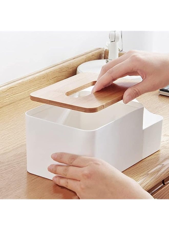 generic - جيني حامل علبة مناديل مع غطاء من الخيزران ومساحة تخزين جانبية - منظم موزع مناديل عصري - صندوق مناديل متعدد الاغراض لديكور المنزل والمكتب والحمام