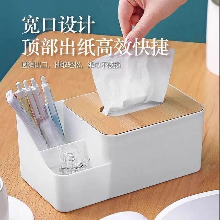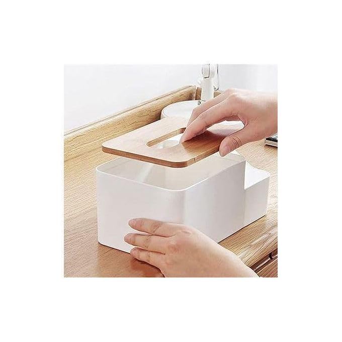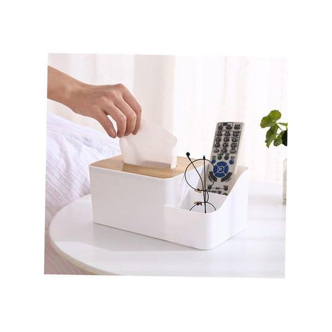Generic - جيني منظم علبة مناديل مع غطاء من خشب الخيزران، ابيض، تخزين متعدد الاغراض، بلاستيك عالي الجودة، اس جي
