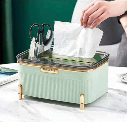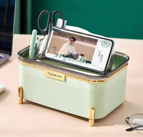 Generic - جيني منظم علبة مناديل بارجل ذهبية، حاوية تخزين عصرية لسطح المكتب، اخضر نعناعي. روم