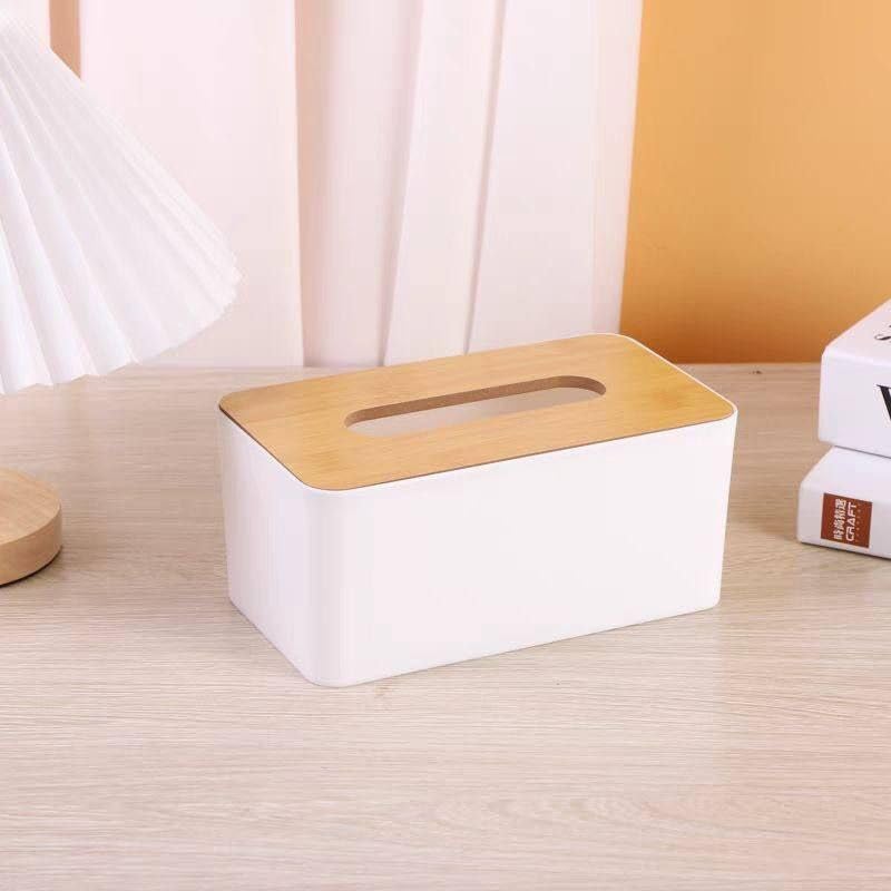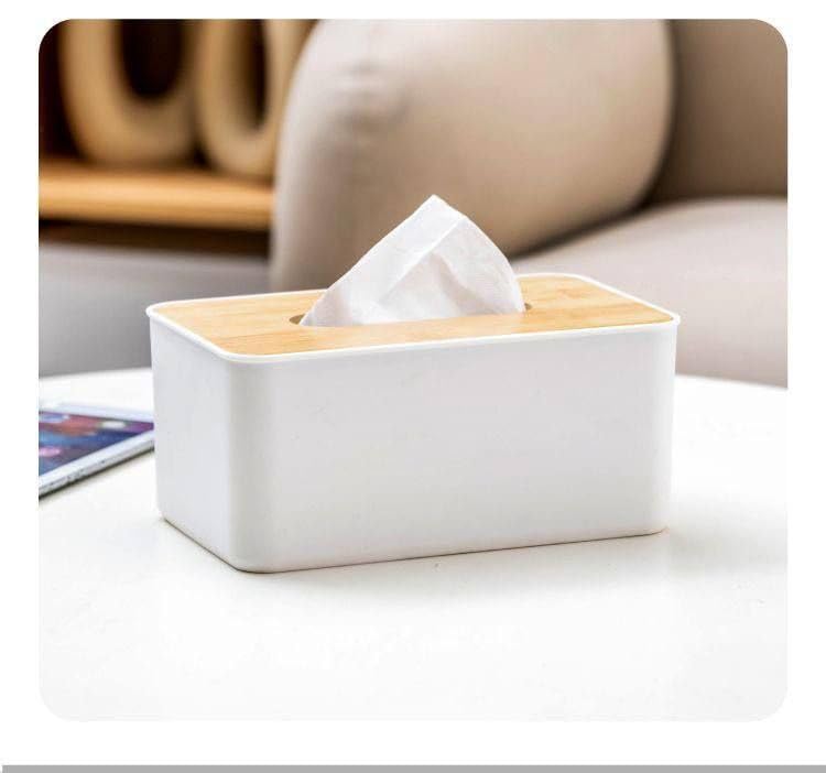 - تصميم أنيق: يتميز حامل علبة المناديل العصري بهيكل أبيض أنيق مقترن بغطاء خشبي طبيعي، مما يضيف لمسة من الأناقة العصرية إلى ديكور أي غرفة