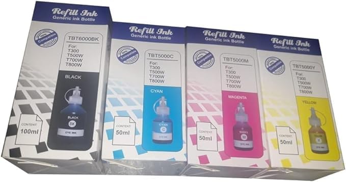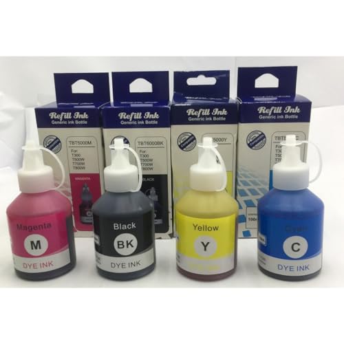 Generic - جيني عبوة اعادة تعبئة حبر لطابعة براذر T300، T500W، T700W، T800W - 4 الوان (اسود، ارجواني ماجنتا وازرق سيان واصفر) - 100 مل اسود، 50 مل لكل منها - وظائف سلسة