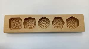 Generic - قالب معمول خشبي تقليدي ب 5 تصاميم زهور مصنوع من خشب الزان الطبيعي لصنع الكوكيز، مقاس 29 × 7 سم