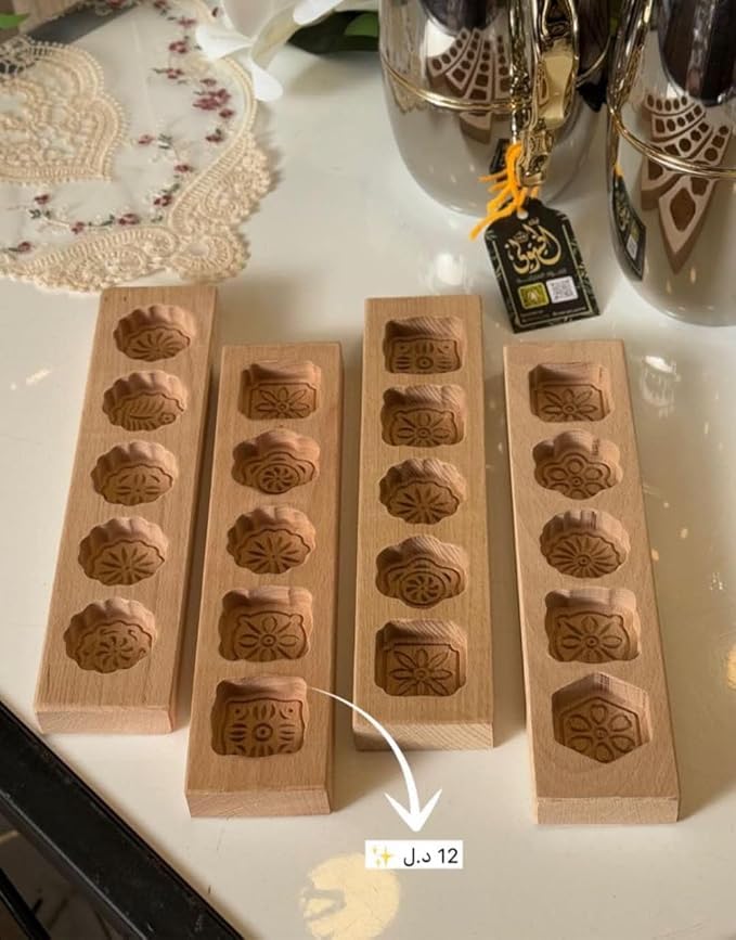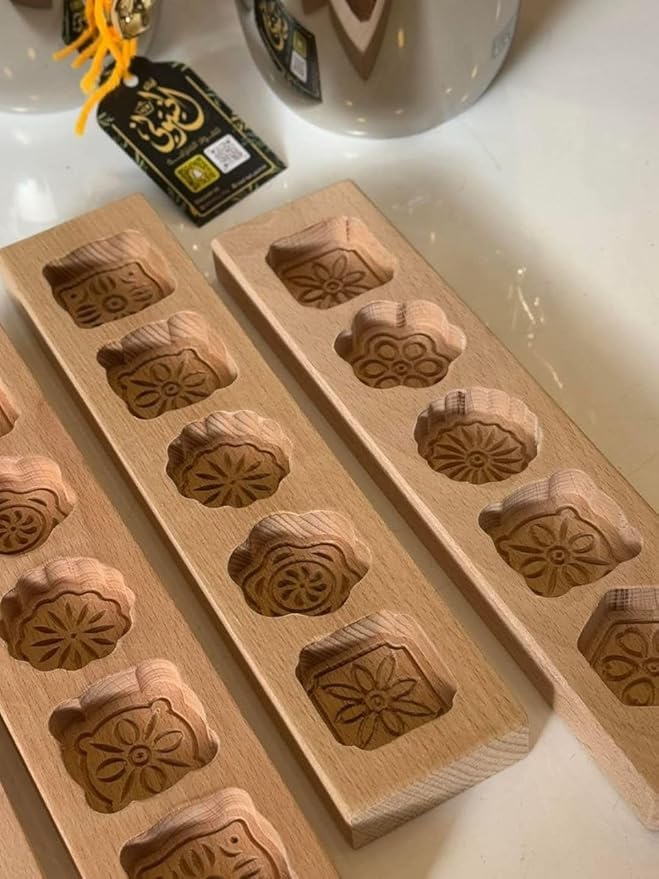 - تصميم تقليدي: يتميز ب 5 تصاميم زهور مميزة محفورة باحتراف على خشب الزان الطبيعي لإنشاء معمول وكوكيز بنقوش جميلة.