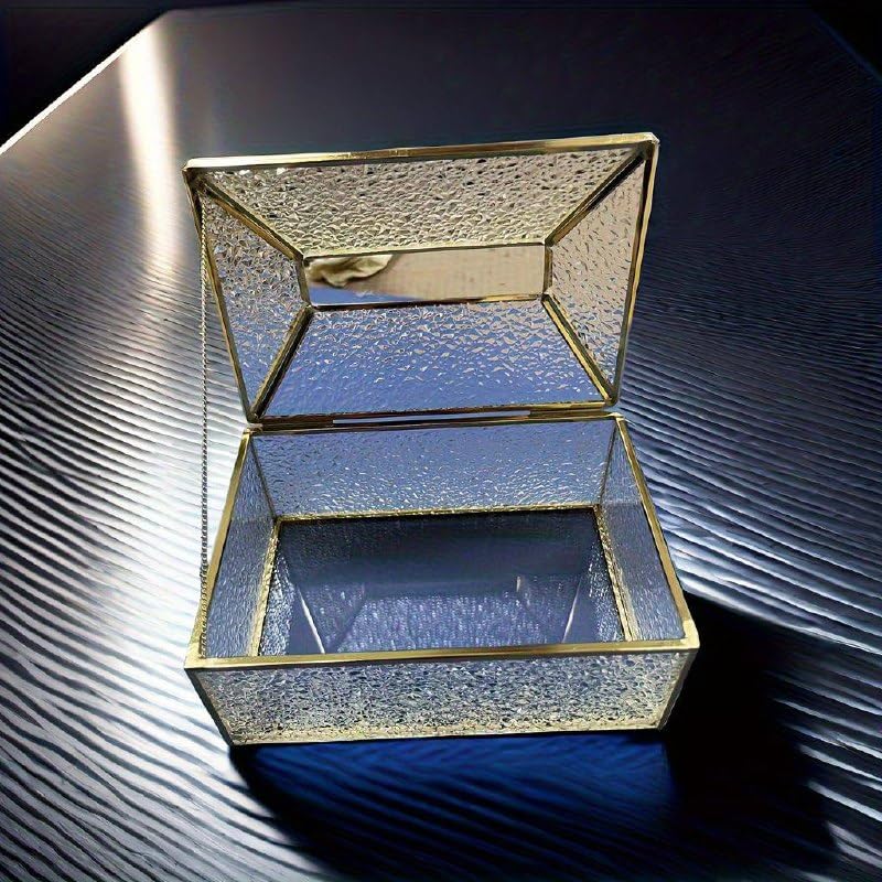 Generic - جيني صندوق مناديل شفاف، هيكل معدني وزجاجي، زخرفة ذهبية، منظم تخزين مزخرف