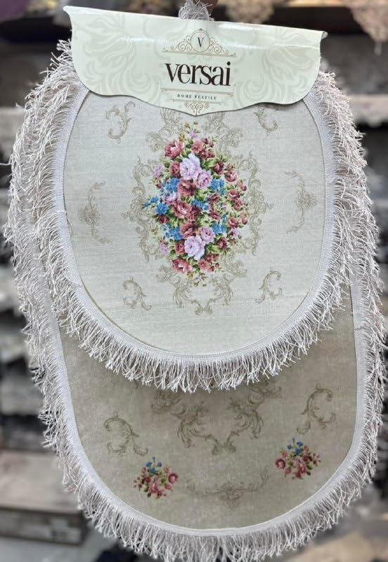 Generic - جيني طقم حمام بيضاوي مخملي تركي مكون من قطعتين مع شراشيب ثلاثية الابعاد، تصميم مطرز بالزهور، بيج، 95 × 60 سم و50 × 60 سم