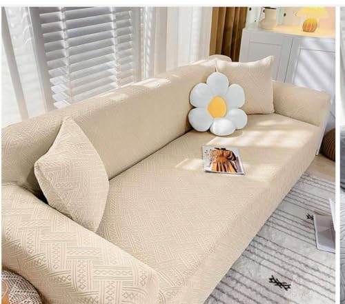 Generic - جيني غطاء اريكة بطول مترين، بيج، غطاء اريكة قابل للتمدد بنمط هندسي