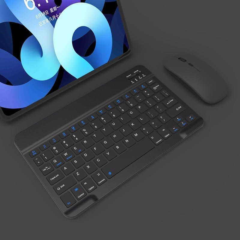- لوحة مفاتيح وماوس بلوتوث بتصميم صغير رفيع للغاية محمول وقابل لإعادة الشحن- (مفاتيح عربي/ إنجليزي) لوحة مفاتيح لاسلكية صغيرة - 150 ساعة.