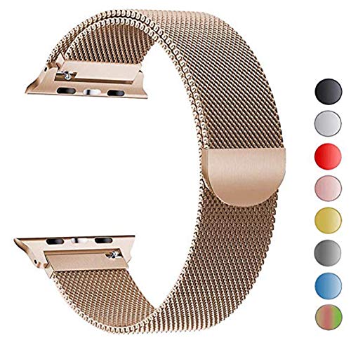 generic - سوار ميلانو لساعة ابل 1 2 3 4 مقاس 42 ملم أو 44 45 من الستانلس ستيل ذهبي للجنسين