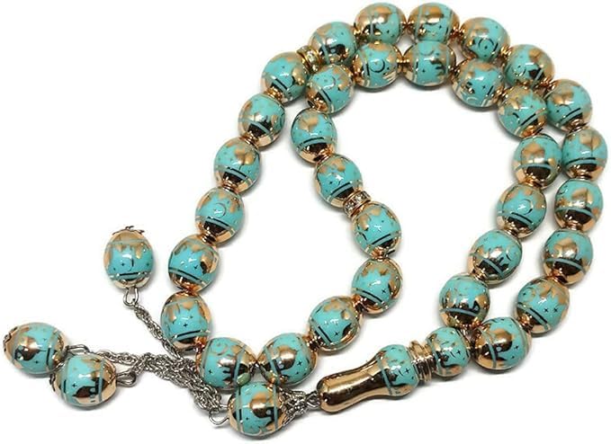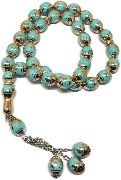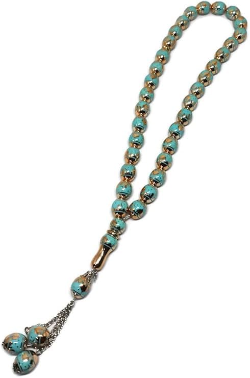 Generic - جيني سبحة اسلامية للجنسين 33 خرزة كريستال حجر ليزر تركواز فضي