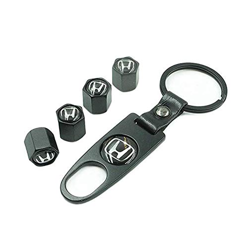 Generic - أغطية صلب بتصميم عالمي لصمامات إطارات السيارة، 4 قطع مع سلسلة مفاتيح (قطعة واحدة)، أسود