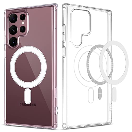 MHM - جراب حماية مطور رفيع للغاية ومقاوم للصدمات بالكامل متوافق مع شاحن ماج سيف متوافق مع موبايل سامسونج جالاكسي S23 الترا، شفاف