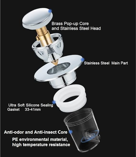 Generic - سدادة حوض حمام مطورة مضادة للانسداد من الفولاذ المقاوم للصدأ