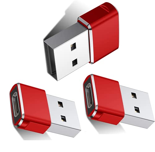 Generic - محول USB-C انثى الى ذكر 3 قطع لكابل الشحن النوع C A متوافق مع ايفون 11 - 12 - ميني - برو ماكس والايربودز وايباد وسامسونج جالاكسي نوت 10 - S20 S21 وجوجل بيكسل 5 4 والكمبيوتر الشخصي من جينيريك احمر