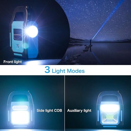Generic - لمبة تخييم ليد سي او بي تعمل بالطاقة الشمسية بمنفذ USB 3 في 1 ساطع وقابل لإعادة الشحن ومقاوم للماء بلون ازرق