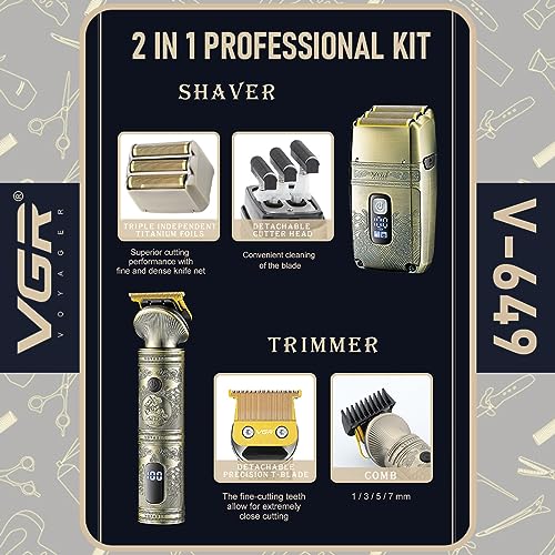 - مجموعة ماكينة حلاقة احترافية لتشذيب الشعر: ارتقِ بتجربة الحلاقة الخاصة بك مع مجموعة ماكينة حلاقة الشعر الاحترافية موديل V-649 المصممة من أجل الدقة والراحة.